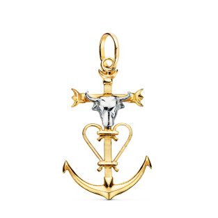 18K CRUZ DE LA CAMARGA ORO BICOLOR CON CABEZA DE TORO. 32 X 20 MM