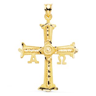 18K CRUZ DE COVADONGA ORO AMARILLO TALLADA 26 X 20 MM