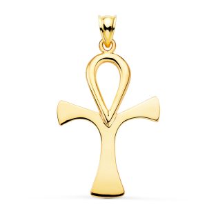 18K COLGANTE ORO AMARILLO BRILLO CRUZ DE LA VIDA 22 X 13 MM