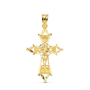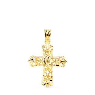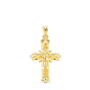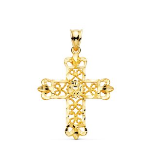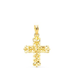 18K CRUZ ORO AMARILLO FILIGRANA BORDES TALLADOS. 22X19 MM