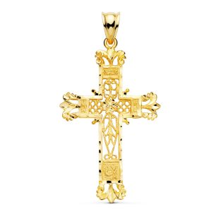 18K CRUZ ORO AMARILLO FILIGRANA CON CRISTO TALLADA 42X27 MM