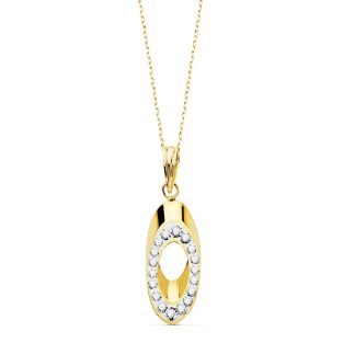 18K COLGANTE BICOLOR OVAL CIRCONITAS CON CADENA