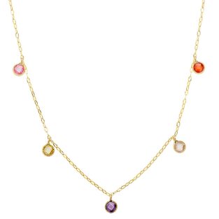 18K GARGANTILLA ORO AMARILLO Y COLGANTES DE CIRCONITAS DE COLORES CADENA 42+3 CM