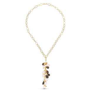 18K GARGANTILLA ORO AMARILLO PIEDRAS COLOR Y FLOR MATE