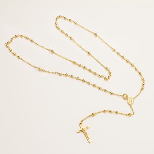 18K ROSARIO ORO AMARILLO CON BOLAS 2 MM Y CRUZ 23X14MM CADENA FORZADA 50 CM