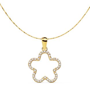 18K COLGANTE FLOR CIRCONITA CADENA 42CM