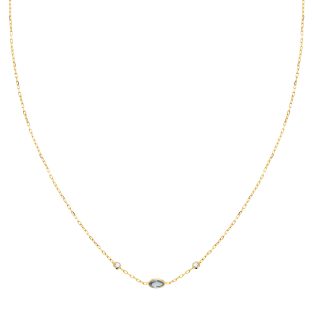 18K GARGANTILLA ORO AMARILLO COLGANTE AGUAMARINA 5X3MM CADENA FORZADA 42 CM