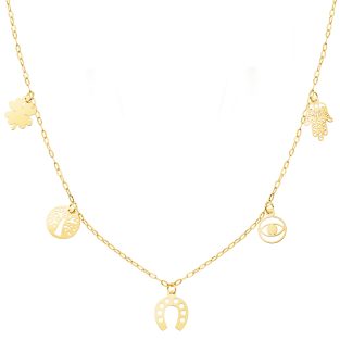 18K GARGANTILLA ORO AMARILLO CON COLGANTES DE LA SUERTE CADENA FORZADA 42 3 CM