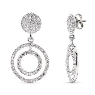 18K PENDIENTES ORO BLANCO LARGOS REDONDOS CON CIRCONITAS