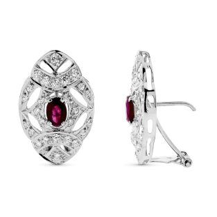 18K PENDIENTES ORO BLANCO DOS CUERPOS CON PIEDRA ROJA 12 X 8MM. 33X12MM