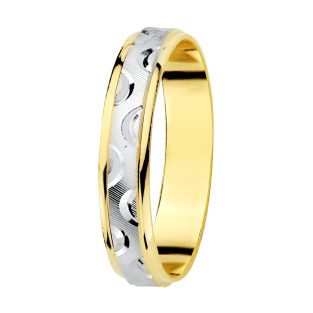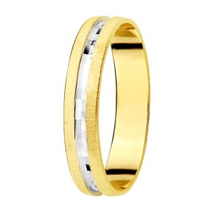 18K ALIANZA ORO BICOLOR TALLADA Y BORDES EN BRILLO 4 MM