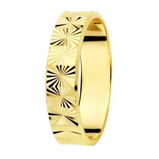 18K ALIANZA ORO AMARILLO BRILLO Y BORDES TALLADOS. ANCHO 4 MM