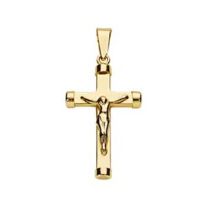 9K CRUZ ORO AMARILLO TUBO CON CRISTO. 31X16 MM