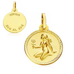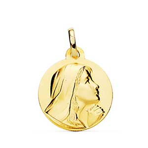 9K MEDALLA ORO AMARILLO VIRGEN NIÑA EN BRILLO 14 MM