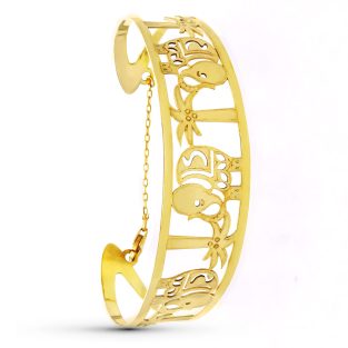 18K PULSERA ORO AMARILLO RIGIDA ELEFANTES LASER 20 MM