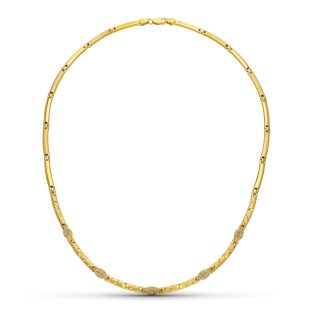 18K GARGANTILLA ORO AMARILLO MATE Y BRILLO TRAMOS TALLADOS Y CIRCONITA