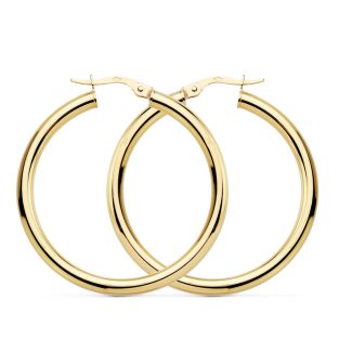 18K AROS ORO AMARILLO REDONDOS HUECOS 35X3 MM