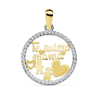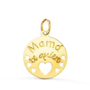 18K COLGANTE ORO AMARILLO REDONDO MAMA TE QUIERO CON CORAZONE CALADOS 15 MM