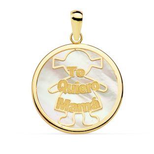 18K COLGANTE ORO AMARILLO NACAR MAMA NIÑA 20 MM