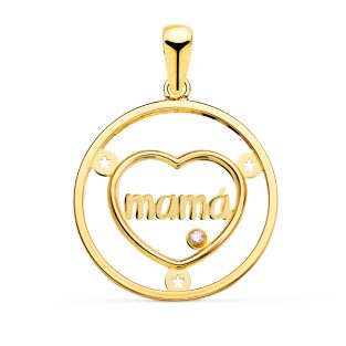 18K COLGANTE ORO AMARILLO CORAZON CON MAMA Y CIRCONITA REDONDO 20MM