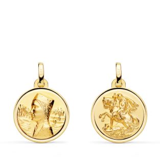 18K ESCAPULARIO VIRGEN MONTSERRAT Y SAN JORGE TALLADO 16 MM