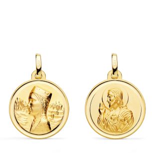18K ESCAPULARIO VIRGEN MONTSERRAT Y CORAZON DE JESUS TALLADA 16 MM