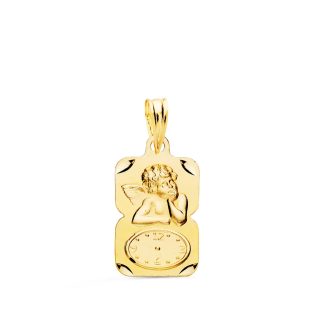 18K MEDALLA RECTANGULO ANGELITO BURLON CON RELOJ TALLADA 19X11 MM