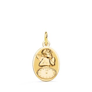 18K MEDALLA OVAL ANGELITO BURLON CON RELOJ TALLADA 19X12 MM