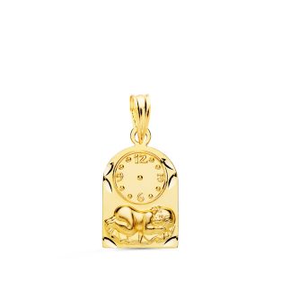 18K MEDALLA ARCO NIÑO DE LA HORA CON RELOJ TALLADA 18X11 MM