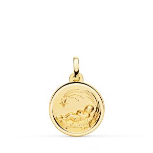 18K MEDALLA ORO AMARILLO NIÑO DEL PESEBRE LISA 16 MM