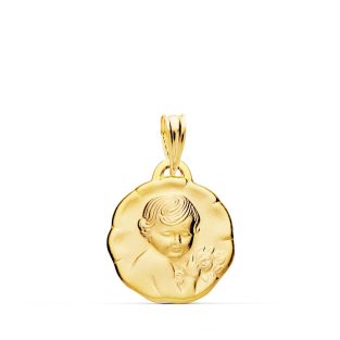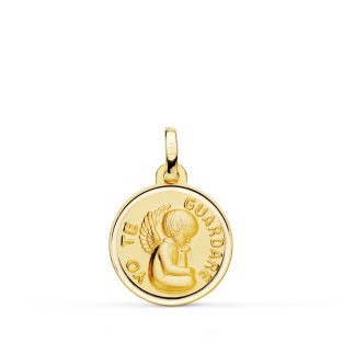 18K MEDALLA ORO AMARILLO ANGEL DE LA GUARDA BORDE TALLADO 18 MM