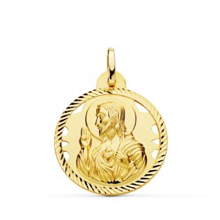 18K MEDALLA CRISTO SAGRADO CORAZON DE JESUS HELICE CALADA 20 MM