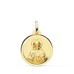 18K MEDALLA ORO AMARILLO SAGRADO CORAZON JESUS MATE Y BRILLO 18 MM