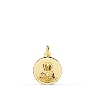 18K MEDALLA CRISTO SAGRADO CORAZON DE JESUS LISO 16 MM
