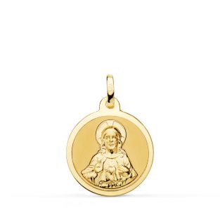 18K MEDALLA SAGRADO CORAZON DE JESUS MATE Y BRILLO 18 MM