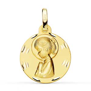 Medallas de la Virgen María Niña de Oro de Ley de 18 Kilates.