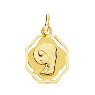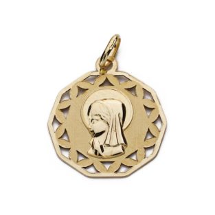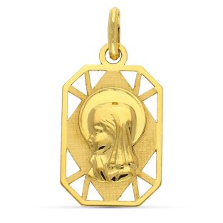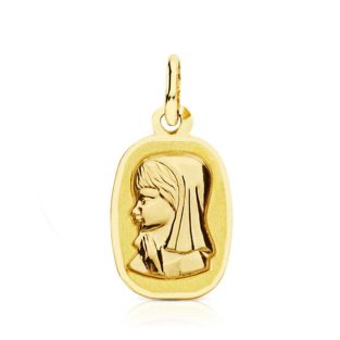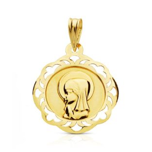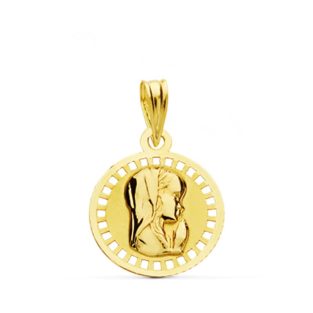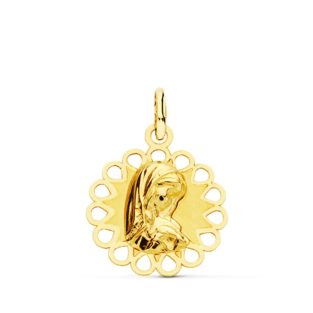 9K MEDALLA ORO AMARILLO VIRGEN NIÑA CALADA MATE Y BRILLO 17X17 MM