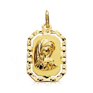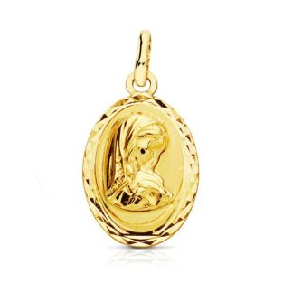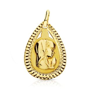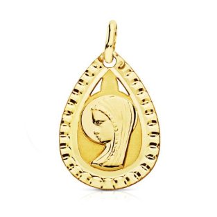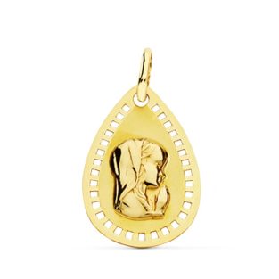 9K MEDALLA ORO AMARILLO GOTA CON VIRGEN NIÑA Y BORDE TALLADO 20X13 MM