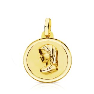 9K MEDALLA ORO AMARILLO VIRGEN NIÑA EN BRILLO 14 MM