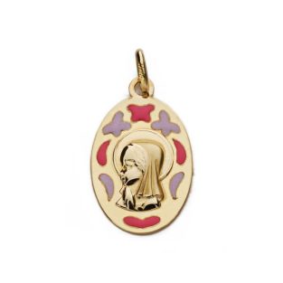 9K MEDALLA VIRGEN NIÑA ESMALTE 9K 21X13 MM