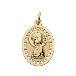 9K MEDALLA VIRGEN NIÑA OVAL CALADA 20X12M
