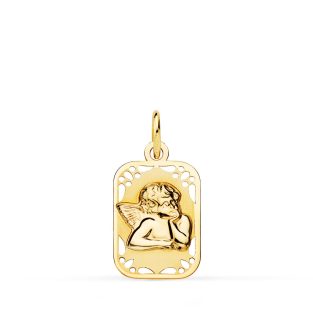 9K MEDALLA RECTANGULAR ANGELITO BURLON BRILLO Y MATE 19X11 MM