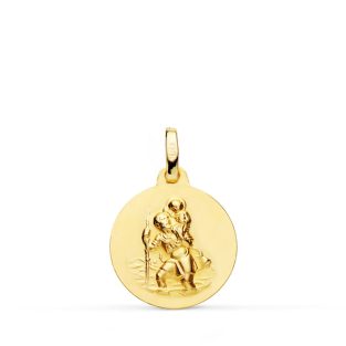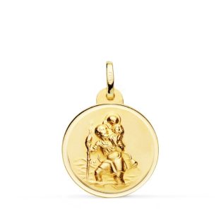 18K MEDALLA ORO AMARILLO SAN CRISTOBAL MATIZADA LISA 22 MM