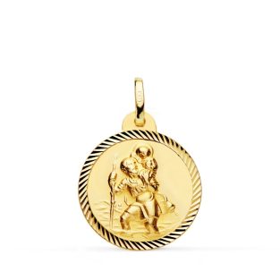 18K MEDALLA ORO AMARILLO SAN CRISTOBAL TALLADA 20 MM