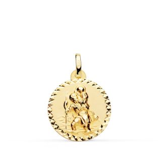 18K MEDALLA ORO AMARILLO SAN CRISTOBAL MATIZADO BISEL 14 MM