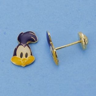 18K PENDIENTES ORO AMARILLO UNICORNIOS ESMALTE CIERRE TUERCA 6 X 5 MM