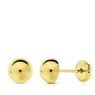 18K PENDIENTES ORO AMARILLO BOLA LISA 6 MM CIERRE ROSCA