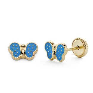 18K PENDIENTES ORO AMARILLO MARIPOSA ESMALTE AZUL. 7X5 MM