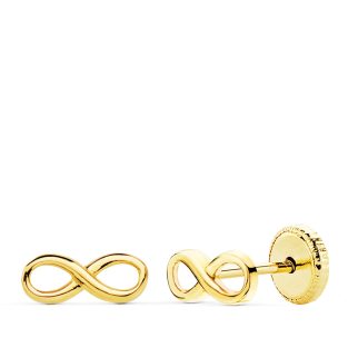 18K PENDIENTES ORO AMARILLO INFINITO LISOS. 8X3 MM CIERRE ROSCA