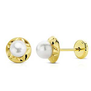 Pendientes con Tornillo en oro Amarillo y Perlas